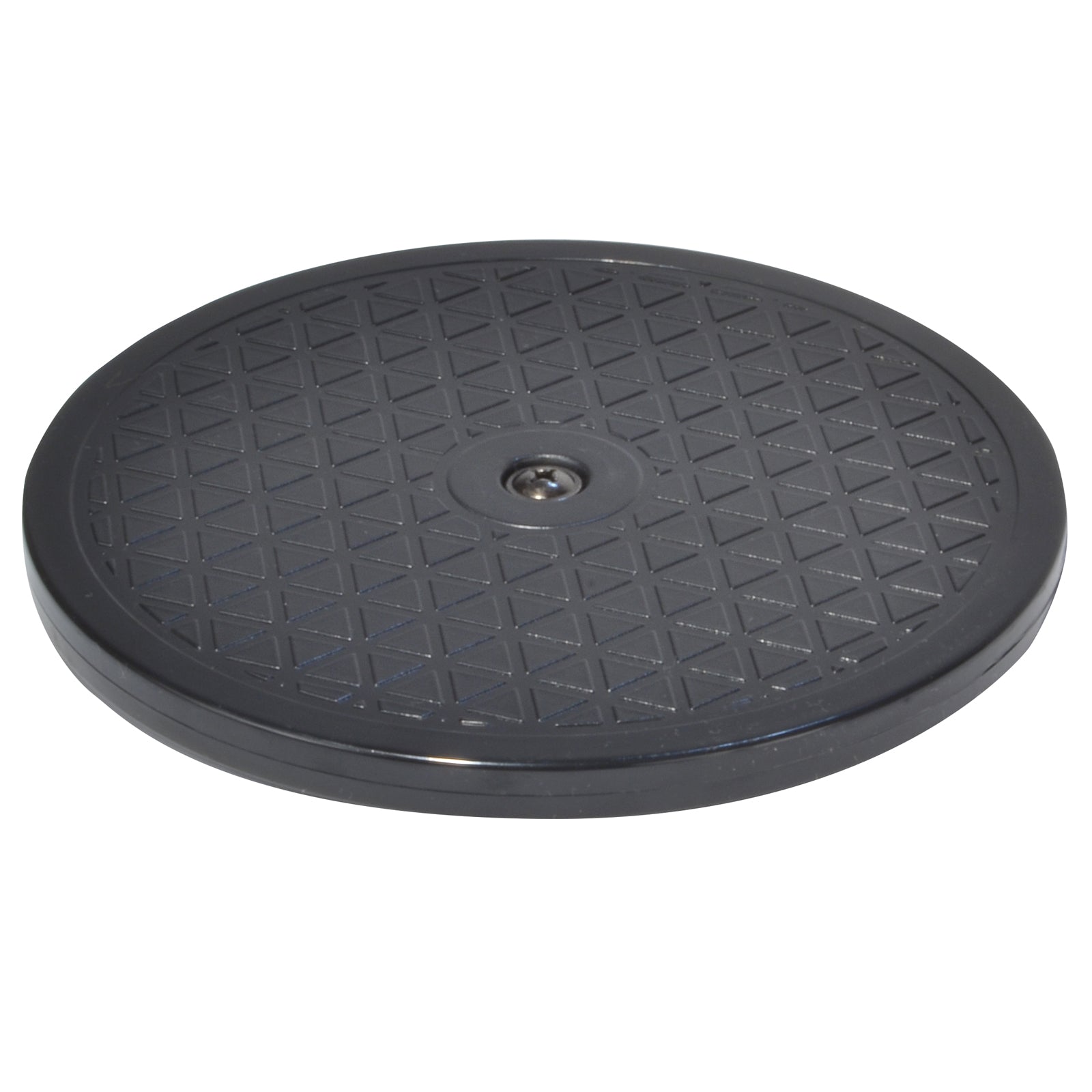 7-1/2 inch diameter x 5/8 inch thick turntable fits comfortably inside most spray booths. Rotates freely and precisely with finger-tip control. Provides easy 'all-around' access to surfaces while airbrushing and spray painting. High-impact plastic construction with molded surface texture.