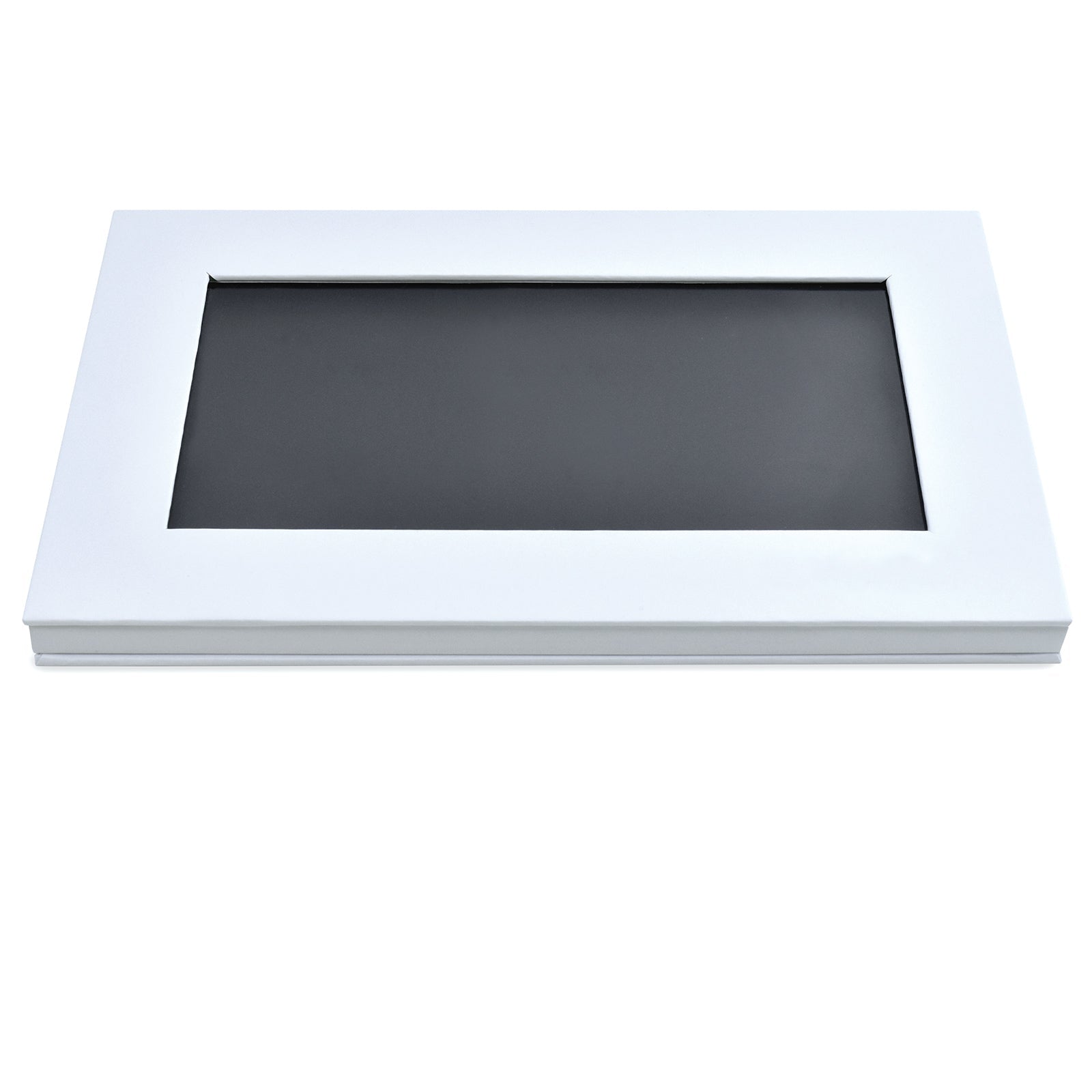 5" x 8" x 7/16" high case includes clear window lid with magnetic closure and holds up to fourteen 36 mm Voodoo Makeup pans. 7" x 4" magnetic interior floor holds metal makeup pans securely, even upside-down!