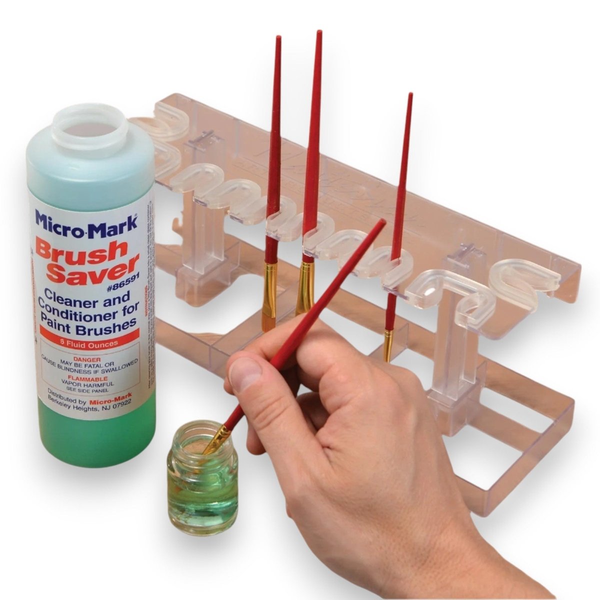 - Removes paint buildup and other debris from brush bristles