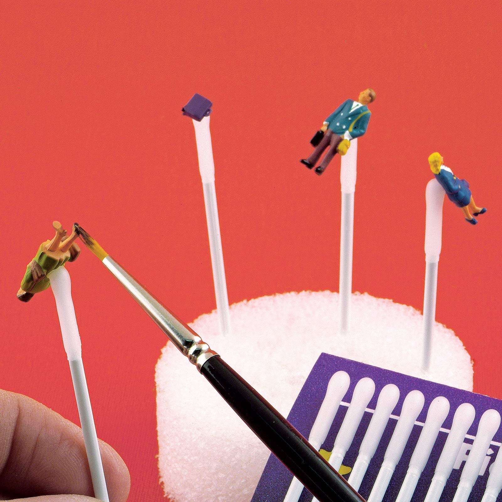This is the best tool we've seen for holding small model parts while positioning and painting. Originally made for the dental trade, Pick-n-Stick is a 2-1/2 inch long plastic stick with a waxy adhesive on one end. To use, just press the adhesive end against the part you need to hold. To remove, just twist. Adhesive grips tightly, but won't transfer to the part. Holds plastic model parts, cast metal ship fittings, miniature hardware and hundreds of other items. When painting numerous parts, push the non-adhesive end into a piece of cardboard or clay to hold the sticks while the paint dries. Each stick is reusable many times. Price is for 30 Pick-n-Sticks in 2 matchbook style packages.