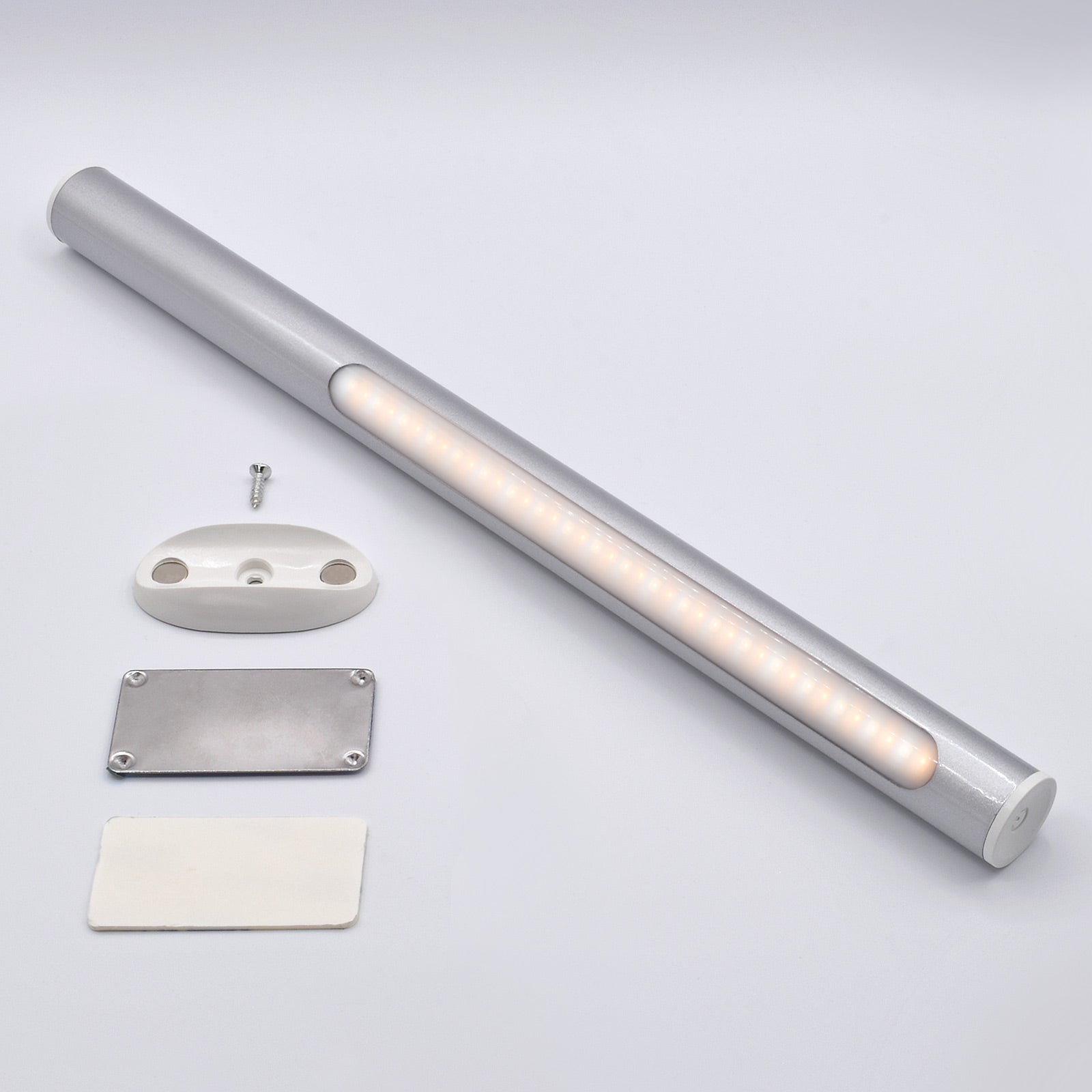 MicroBRYTETM puts incredibly brilliant, sharp-focused, color-adjustable LED lighting wherever you want it to go, no cords, no cables, no boundaries! At less than 1" in diameter and 12" long, this versatile "magic wand" of light gives off virtually zero heat, fits just about anywhere you need it, and can be hand-held or mounted to shine its amazingly bright 200 lumen beam up, down and sideways. Thanks to a high-capacity 3.7V rechargeable lithium-ion battery and sturdy metal housing, MicroBRYTE is not only a long-lasting illumination workhorse in the shop, the home and even the outdoors, it looks great doing it, with its high-quality satin nickel metallic finish. Touch-control button activates the LEDs and allows the user to switch between neutral white 4000K, cool "daylight" 6500K, and warm 3000K light. Once you've made your color temperature selection, press and hold the button to control the brightness from 2% to 100% with its built-in dimmer. Work for up to 10 continuous hours with the dimmer at 50%, or up to 4 hours at 100%; then use the included USB cable to recharge from any convenient power source. In 2 to 3 hours, you're ready to do it all again. Or, leave it plugged in and let the light shine on as long as you wish. Complete set includes: MicroBRYTE light, 3' USB cable, 1 form-fit removable magnetic mounting bracket, 1 half-inch mounting screw, 1 metal mounting plate and 1 pre-cut, double-sided 3M foam adhesive pad. The Future of Lighting is Here . . . Introducing the BRYTETM Line by CorebazaarstoreBuilt upon the latest advances in LED and battery technology, and incorporated into innovative product designs, the Corebazaarstore BRYTETM Line takes portable and wearable lighting to the next level. For ultimate reliability and portability, each BRYTE lighting product includes a built-in USB rechargeable battery, so you'll never have to fumble around in the dark trying to find the right size disposable batteries. Simply plug your BRYTE product into any USB port to charge up and go. Integrated LEDs provide brilliant light with superior efficiency and virtually zero heat, allowing you to use your BRYTE product for hours on end without recharging, even at full intensity. The Corebazaarstore BRYTE Line is perfect for every type of work, DIY project, and recreational activity where good lighting makes all the difference.