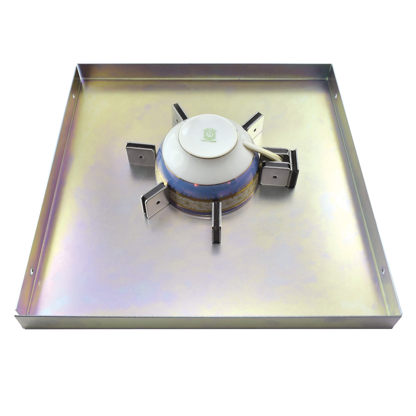 Woodworkers, model builders, DIYers and crafters rely on it every day for joining and holding components perfectly square and true while glue dries, and for holding together and gluing oddly-shaped items on which ordinary clamps would never work. Its beauty is in its simplicity. 8 powerful magnets sandwiched between a fixed plate and a removable/ repositionable plate allow you to place the magnets' strong holding force just where you need it on the 10-1/4" x 10-1/4", 21 gauge steel jig plate. The plate's 7/8" flanges are bent up at a 90 degree angle to hold items squarely and securely. Open ends allow long, thin wood pieces to extend outside the jig if needed. Includes 8 magnetic holding plates. Corebazaarstore Tip: Our Wide Base Vertical Steel Squares (2", #89328; 3" #89329; 4" #89330; available separately) are a perfect add-on for our #60304 Magnetic Gluing Jig when you need to assemble taller projects square and true.