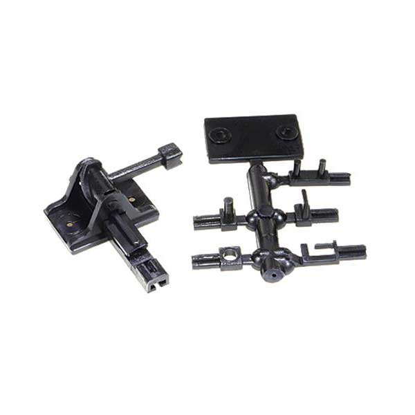 Sprung ground throws are designed to be connected directly to the turnout taking advantage of the internal stainless steel springs. A shim to raise the stand to tie level and five different end fittings to connect to most turnouts are provided: hook end for Atlas, blade for Roco, hole for PECO, small round pin for Micro Engineering and round pin for Shinohara and others.