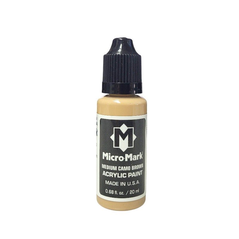 Medium Camo Brown is a muted brown with reddish undertones, closely aligned with FS 30118 or NATO Brown standards. It strikes a balance between shadow and highlight tones, making it useful for replicating both fresh paint and weathered, sun-faded military equipment. When paired with darker greens and blacks, it provides strong visual disruption for realistic camouflage.