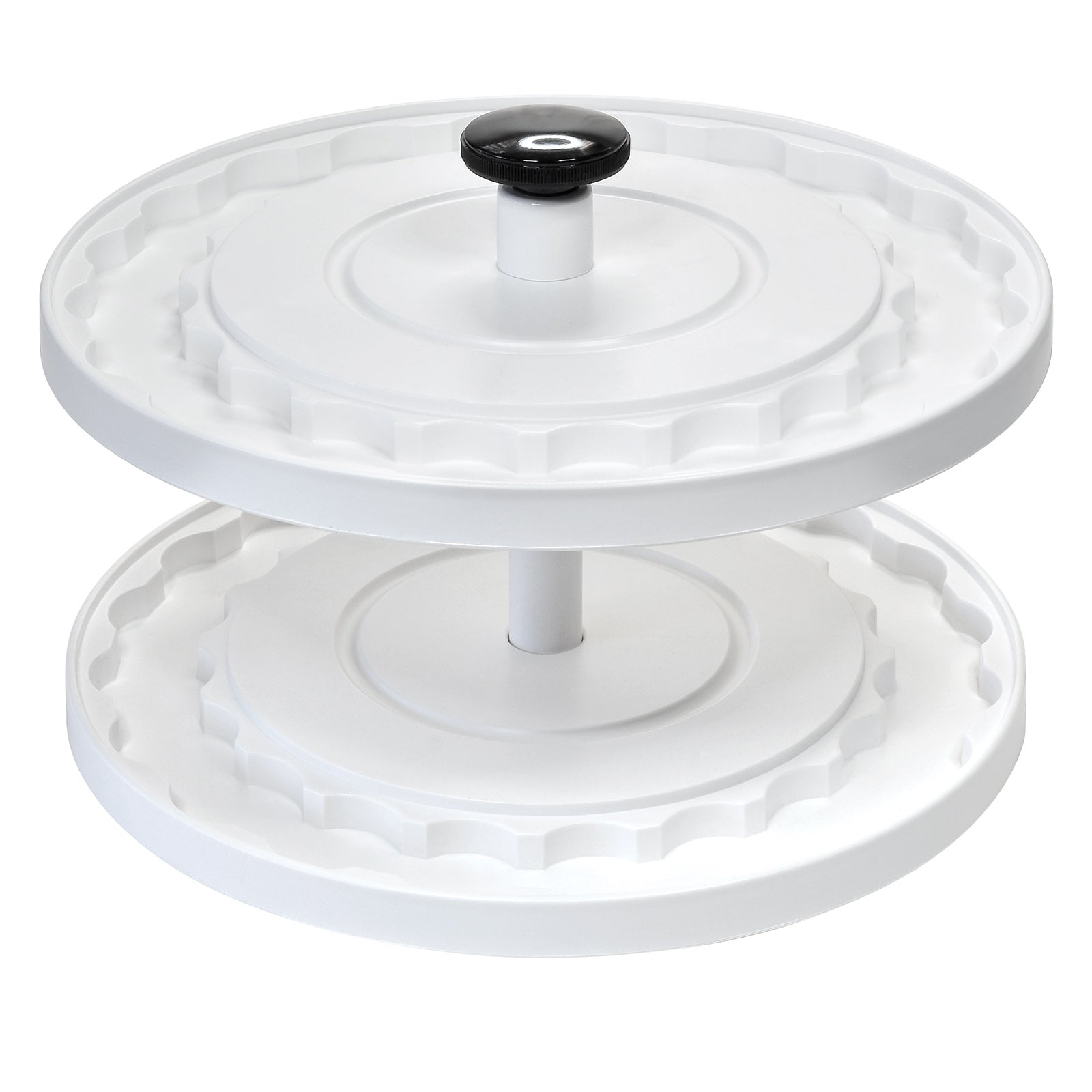 This carousel is not only a pleasure to use, but also is a great way to clean up your work area and keep it organized. Heavy duty ball bearing base allows carousel to spin almost effortlessly, making it easy and quick to find the right color. Includes a large knob for carrying and turning. Made of durable polymers with sturdy metal bearings. Designed to hold small paint jars from nearly every manufacturer.