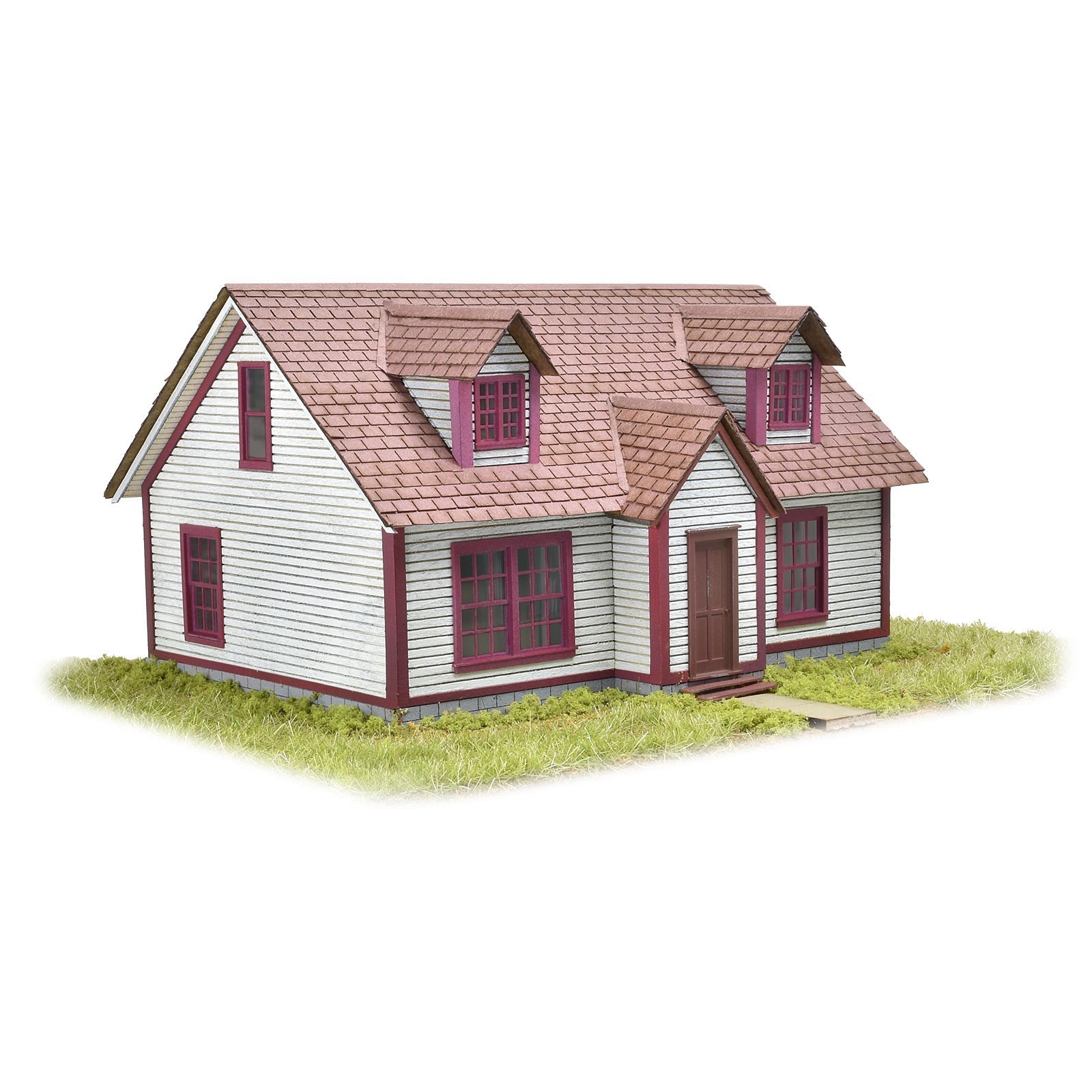 Homes like the Madison were built during the post-WWII housing boom. Classically styled, yet modern, these small capes dot the landscape from coast-to-coast. Kit can be built with or without roof dormers making it two kits-in-one. Basswood components with Tichy doors, windows and roofing. Assembly required. Scenic materials are not included. Paint and glue sold separately.