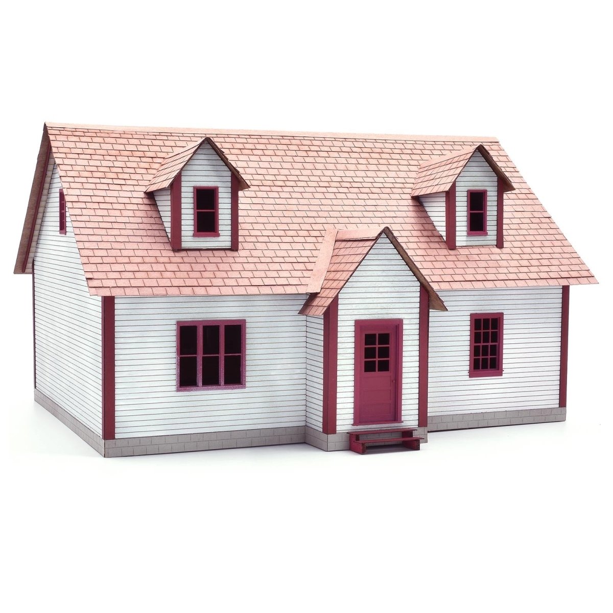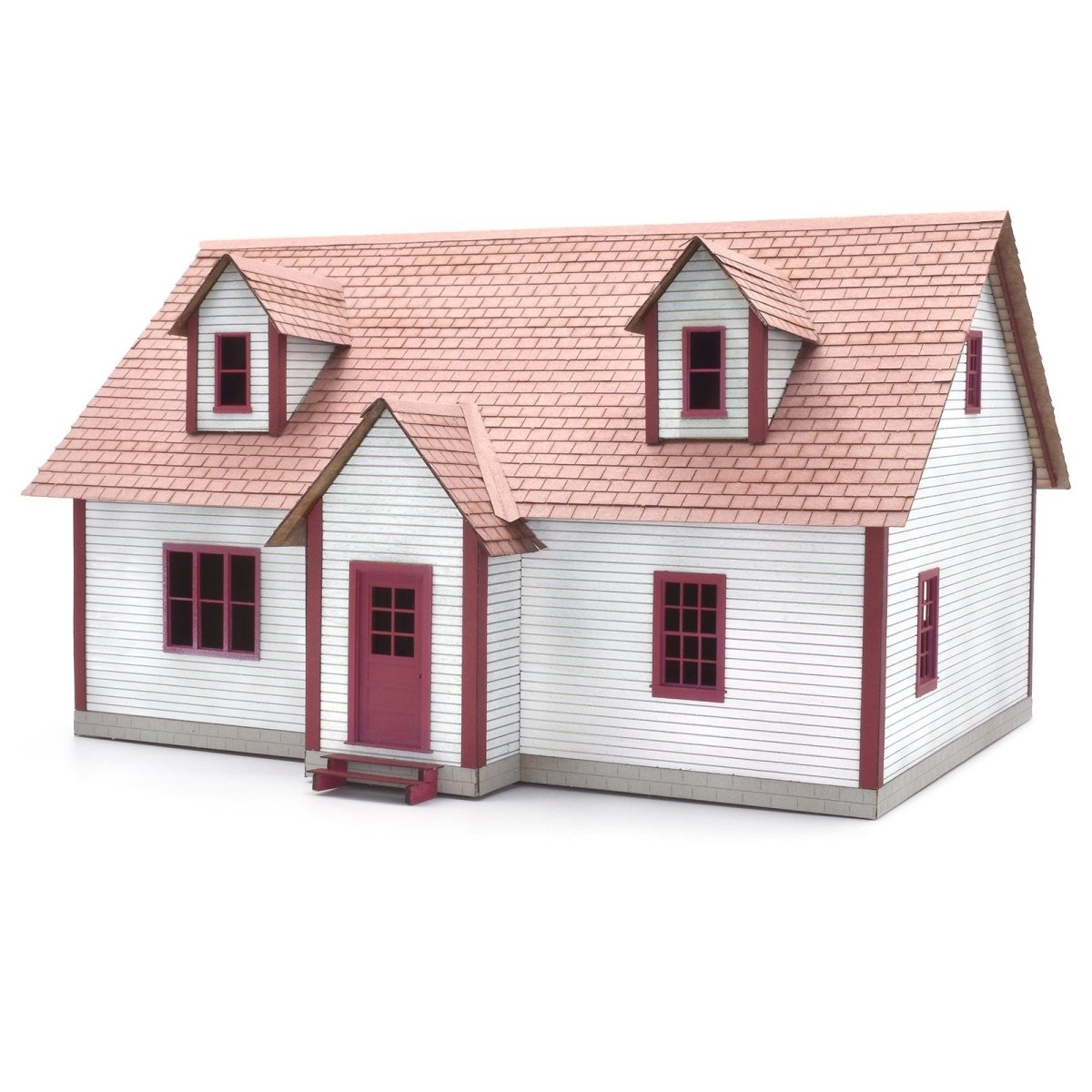 Homes like the Madison were built during the post-WWII housing boom. Classically styled, yet modern, these small capes dot the landscape from coast-to-coast. Kit can be built with or without roof dormers making it two kits-in-one. Basswood components with Tichy doors, windows and roofing. Assembly required. Scenic materials are not included. Paint and glue sold separately.