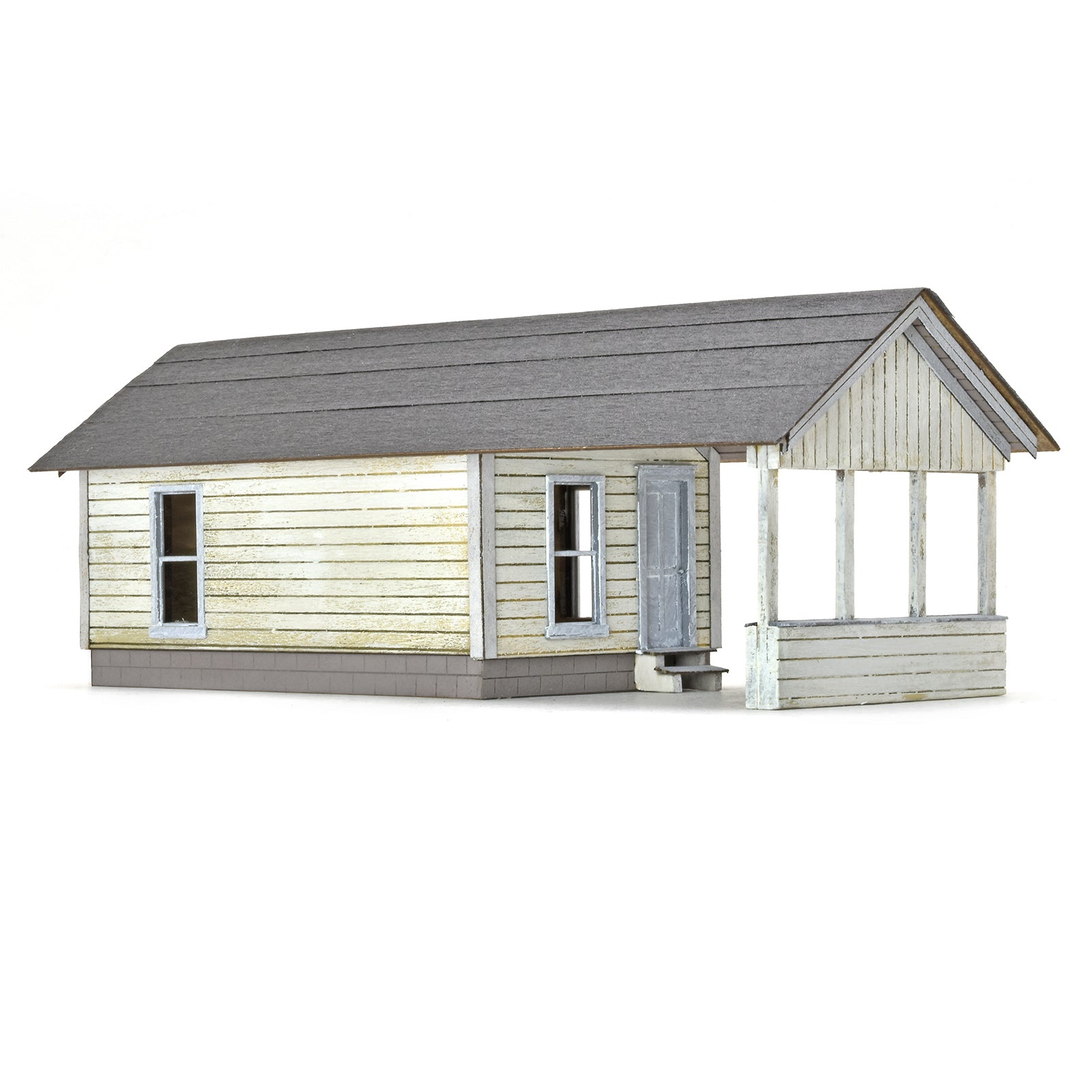 This laser-cut basswood kit replicates the classic yard office. Typically a small, one-story office structure located at one or both ends of a rail yard, the yard house serves as a temporary shelter/lounge for the yard workers while waiting for their next assignment. Prior to the transition era, many were constructed of wood. Includes illustrated instructions. Assembly required. Paint and glue sold separately.